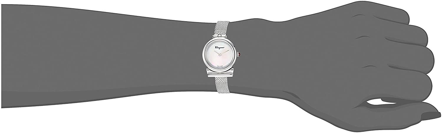 Ferragamo 不銹鋼指針式石英手錶,配以精美的銀色錶帶